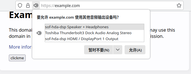 允许用户在浏览器中选择音频播放设备 (扬声器, 蓝牙耳机...), 就像在操作系统中选择播放设备一样